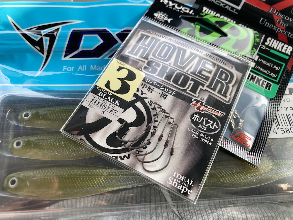 ホバスト用フックを選ぶときは、ワームサイズが3インチなら#3、4インチなら#2を合わせるのが一般的に推奨されています。